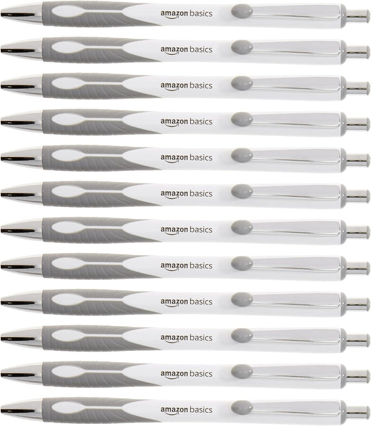 Amazon Basics (Retractable ballpoint pen- white barrel, medium point 1 MM,black ink (12 pack)
