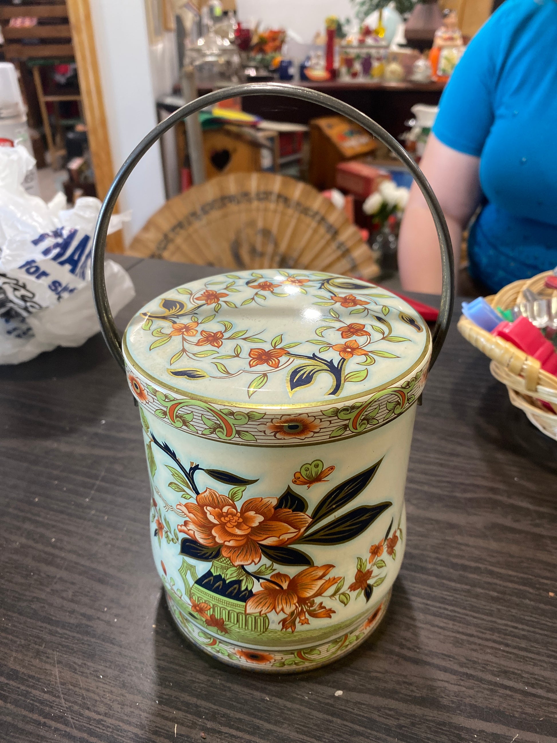 (1261) flower tin w/ handle