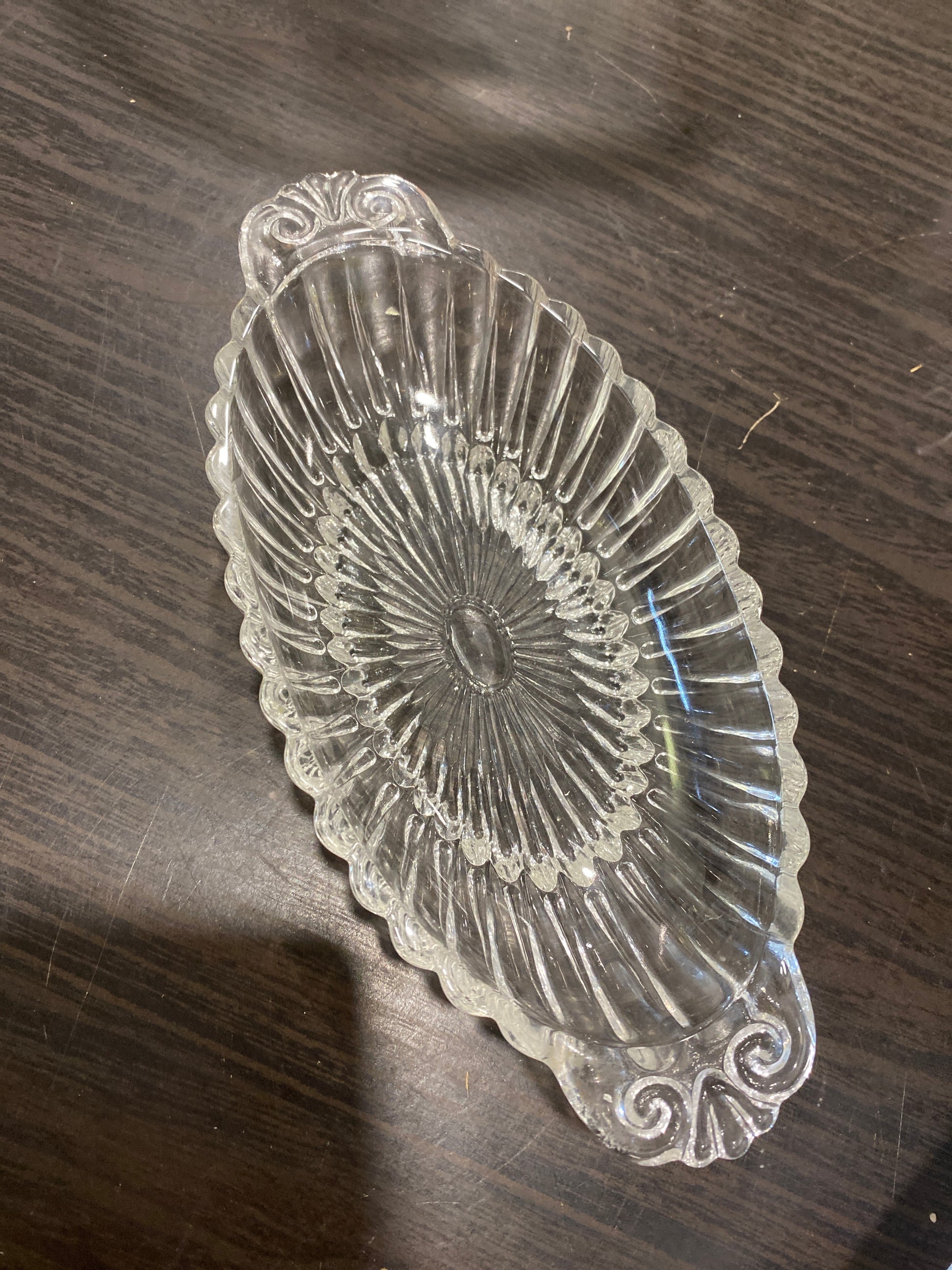 (1858) long glass candy dish