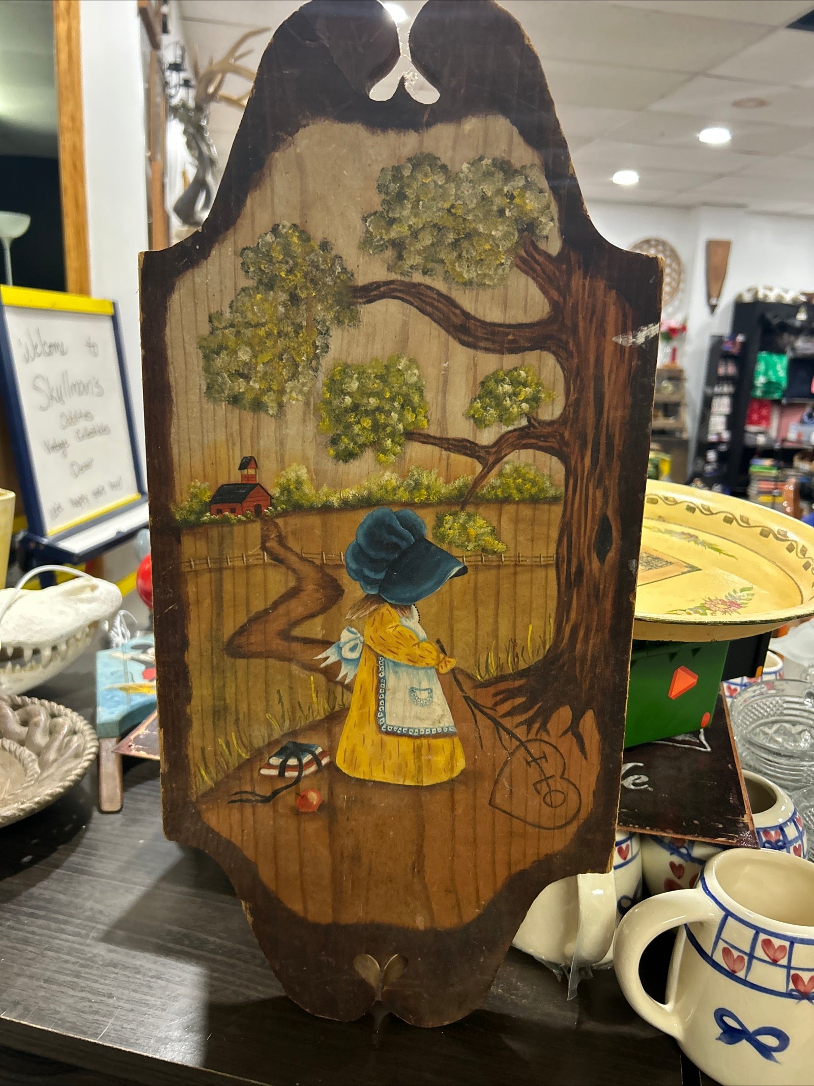 (445) A vintage hand painted ceramic holly hobby plaque Acrylics Large 19”x14”