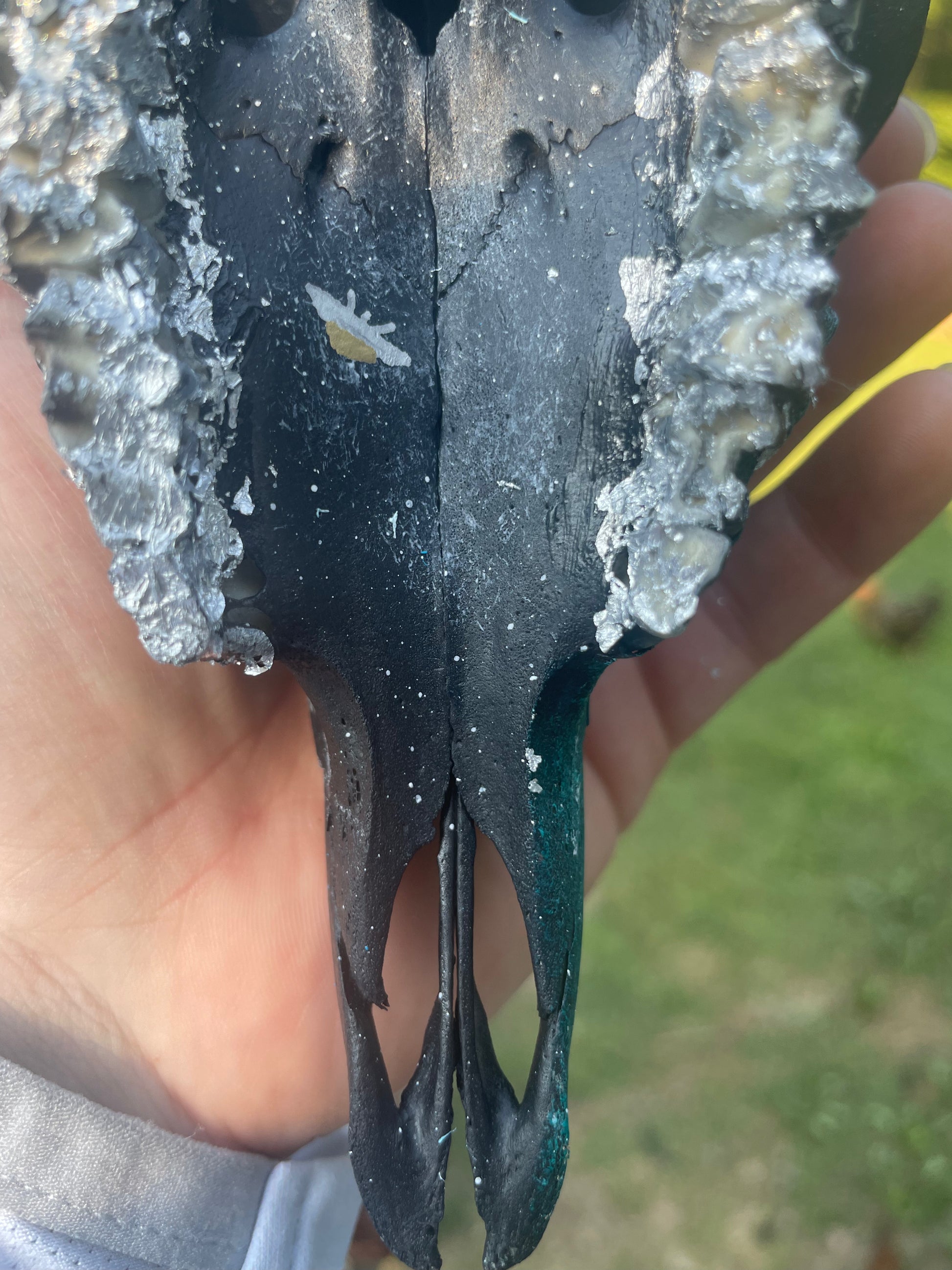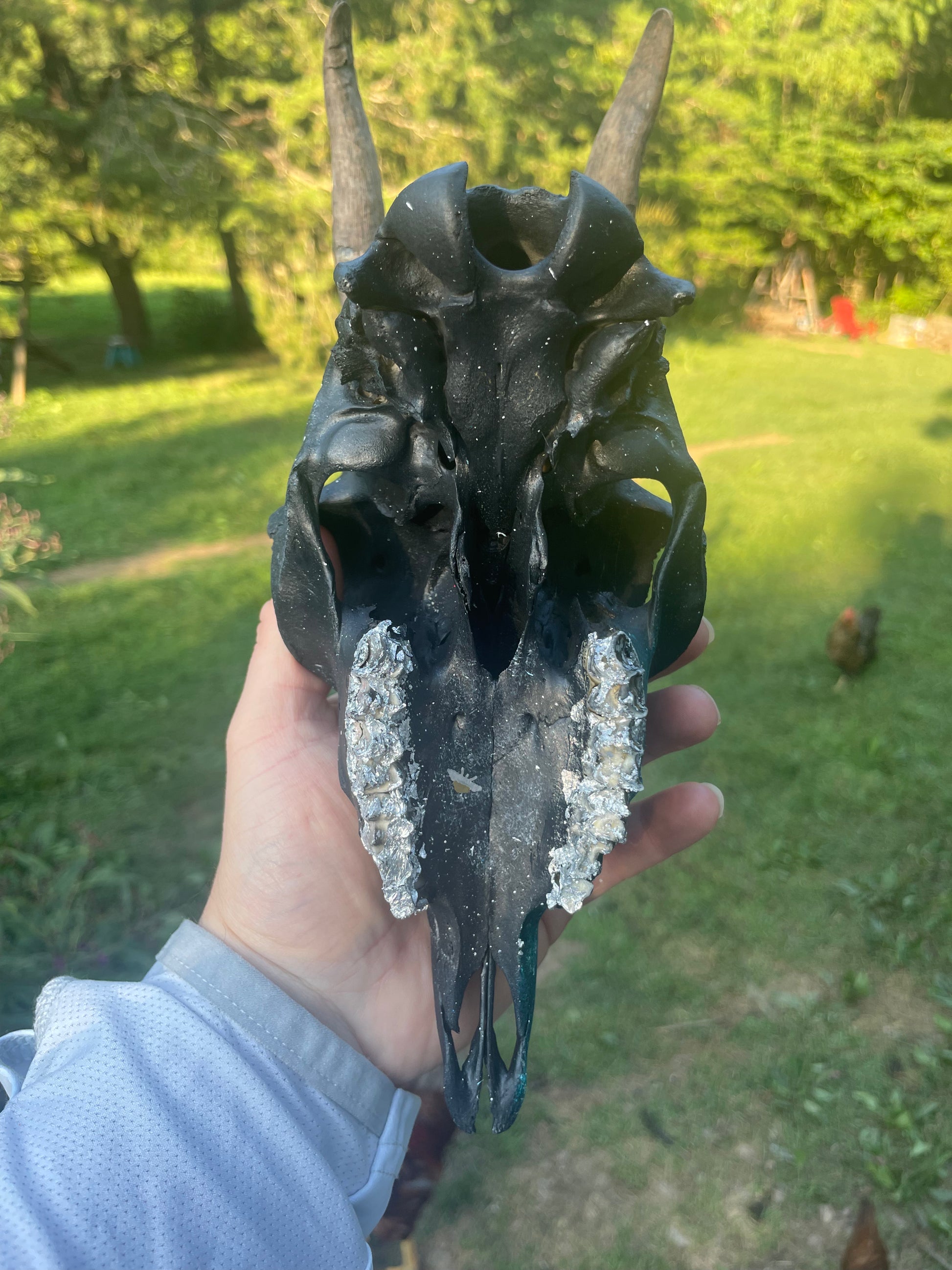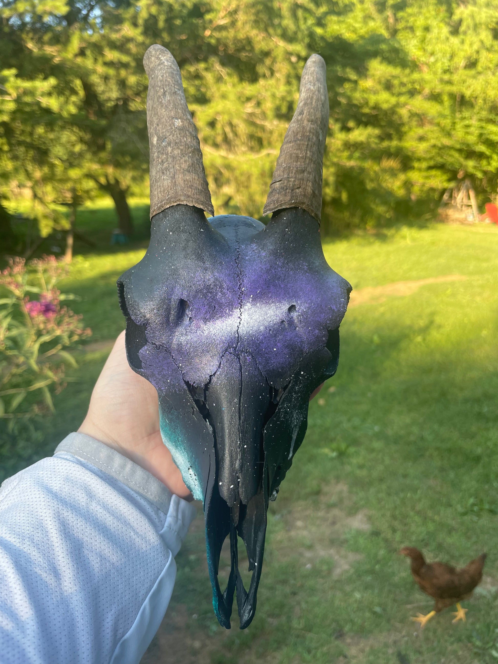 A beautiful hand painted goat skull. Would look beautiful in anyone’s collection!