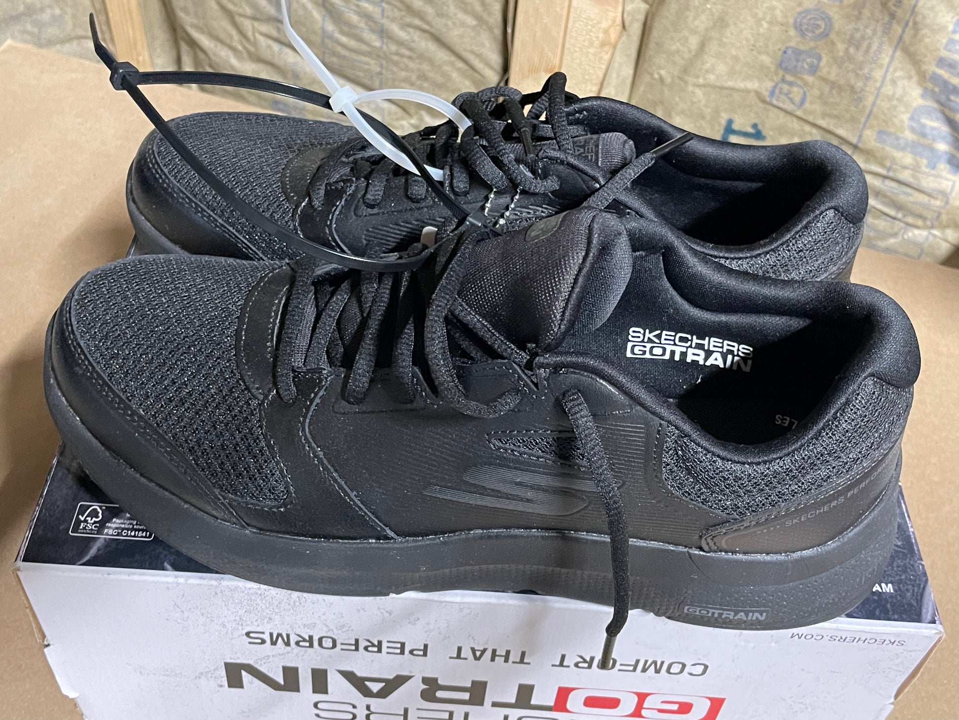 cross training and running design with a lace up leather and mesh upper, Skechers Goga Mat Technology breathable insole, and ULTRA GO cushioned platform.