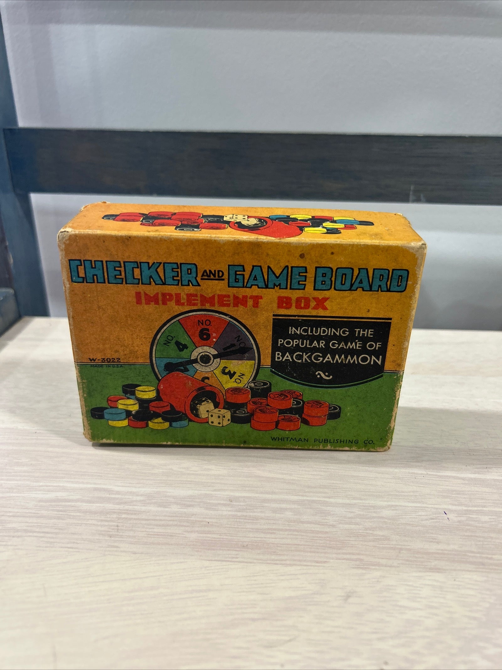 VINTAGE CHECKER & GAME BOARD IMPLEMENT BOX GAME(337)